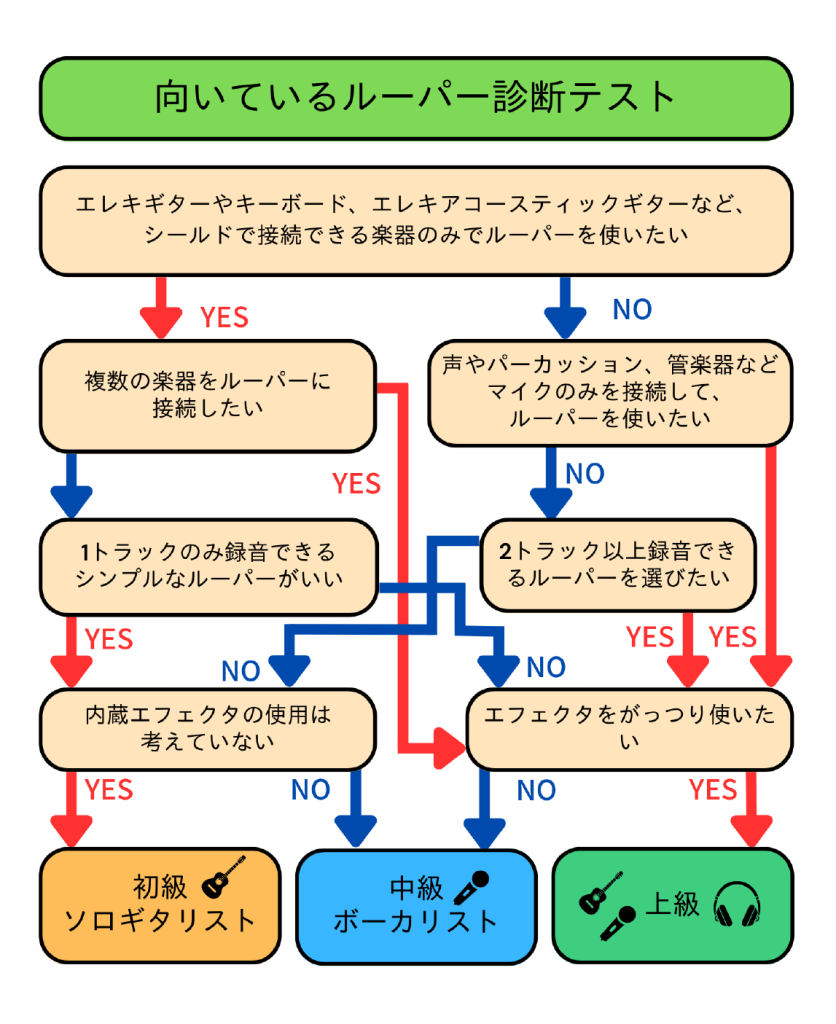 - 1.下記フローチャートであなたに向いているルーパー診断テストを受けましょう。